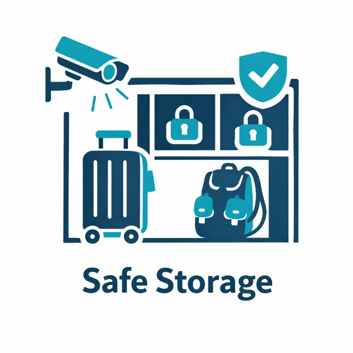 You can store suitcases, backpacks, travel bags, and other properly closed luggage. Oversized or special items may require prior approval.